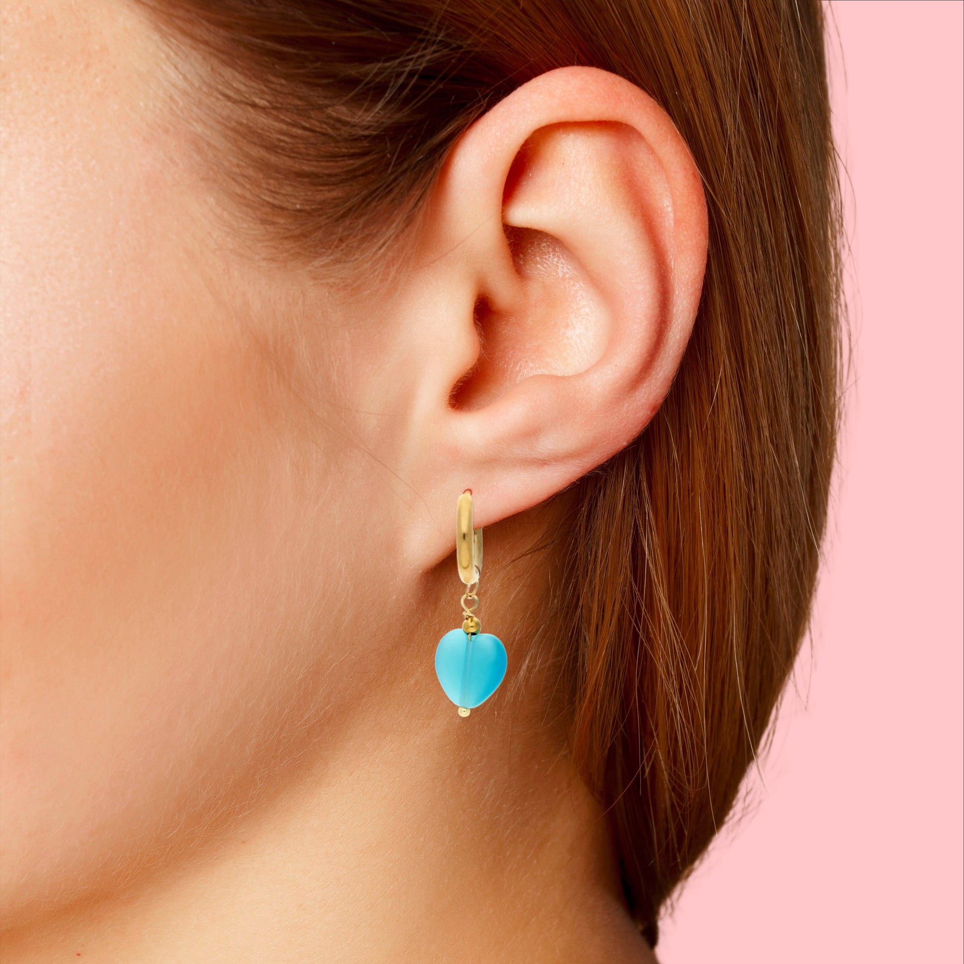 Boucles d'Oreilles Créoles Coeur Tendre Turquoise